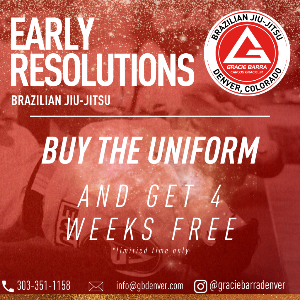 At Gracie Barra Denver, we believe in the gift of empowerment through martial arts. This holiday season, we’re thrilled to extend a special offer that’s bound to elevate your Jiu-Jitsu experience: Purchase a uniform from now through Christmas and receive an exclusive 4 WEEKS FREE to enrich your training and become part of our thriving Jiu-Jitsu family!